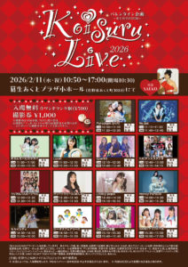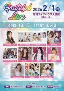 2024年1月7日「第8回 新春うんめぇもん祭り」 アイドルステージ☆ 2023-12-16 最終更新日時 : 2023-12-16 sbd 【会場】佐野商工会議所 ライブ:3階大会議室 物 販:3階ロビー 【時間】9:40~17:30(入場9:20) 【入場無料☆】